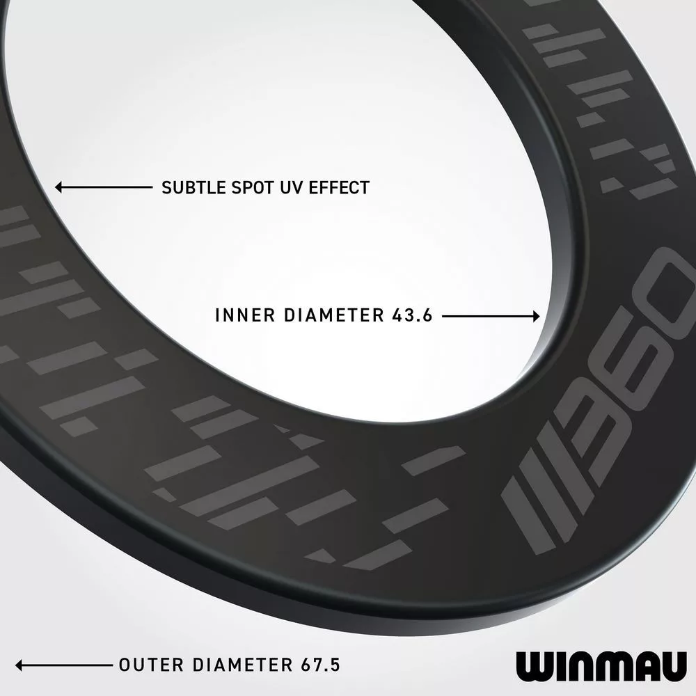 Černý ochranný kruh chrání stěnu před odbočenými šipkami a zároveň elegantně doplňuje vzhled terče.