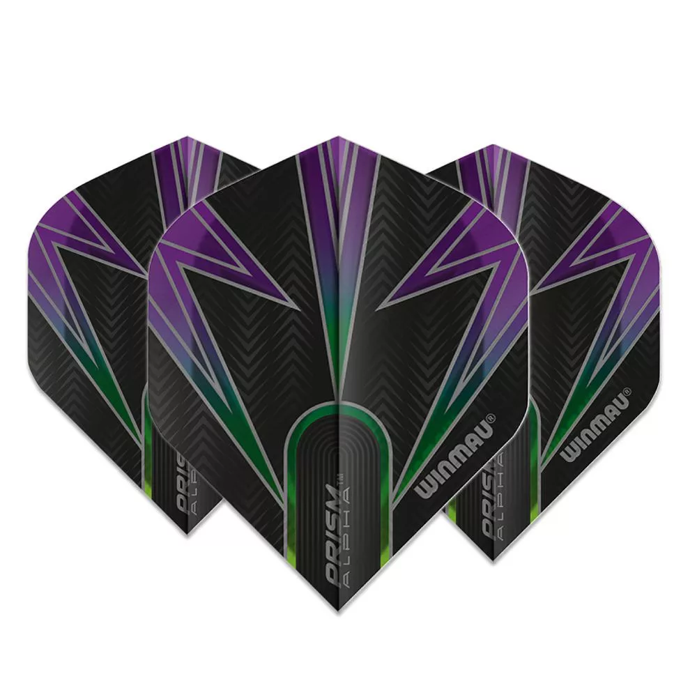 Balení obsahuje 3 kusy letek na šipky Winmau Prism Alpha standard černá a fialová.