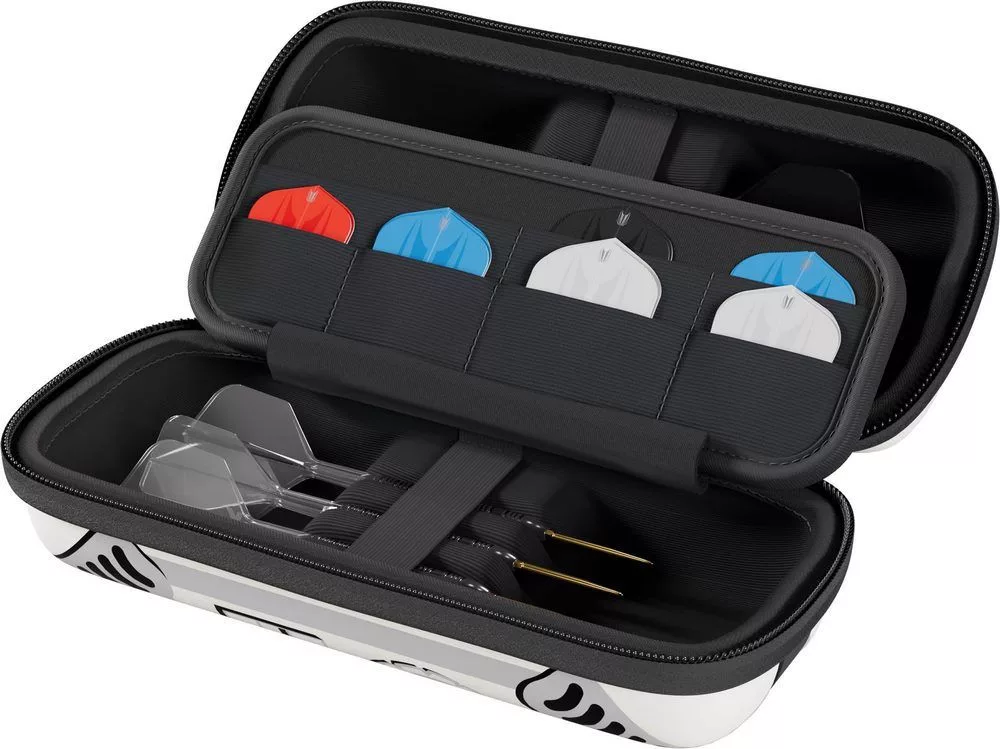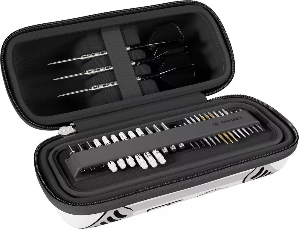 - Swiss Point organizér: Speciální přihrádka na 15 Swiss Point hrotů a 12 shaftů – ideální pro hráče, kteří rádi mění sestavu.