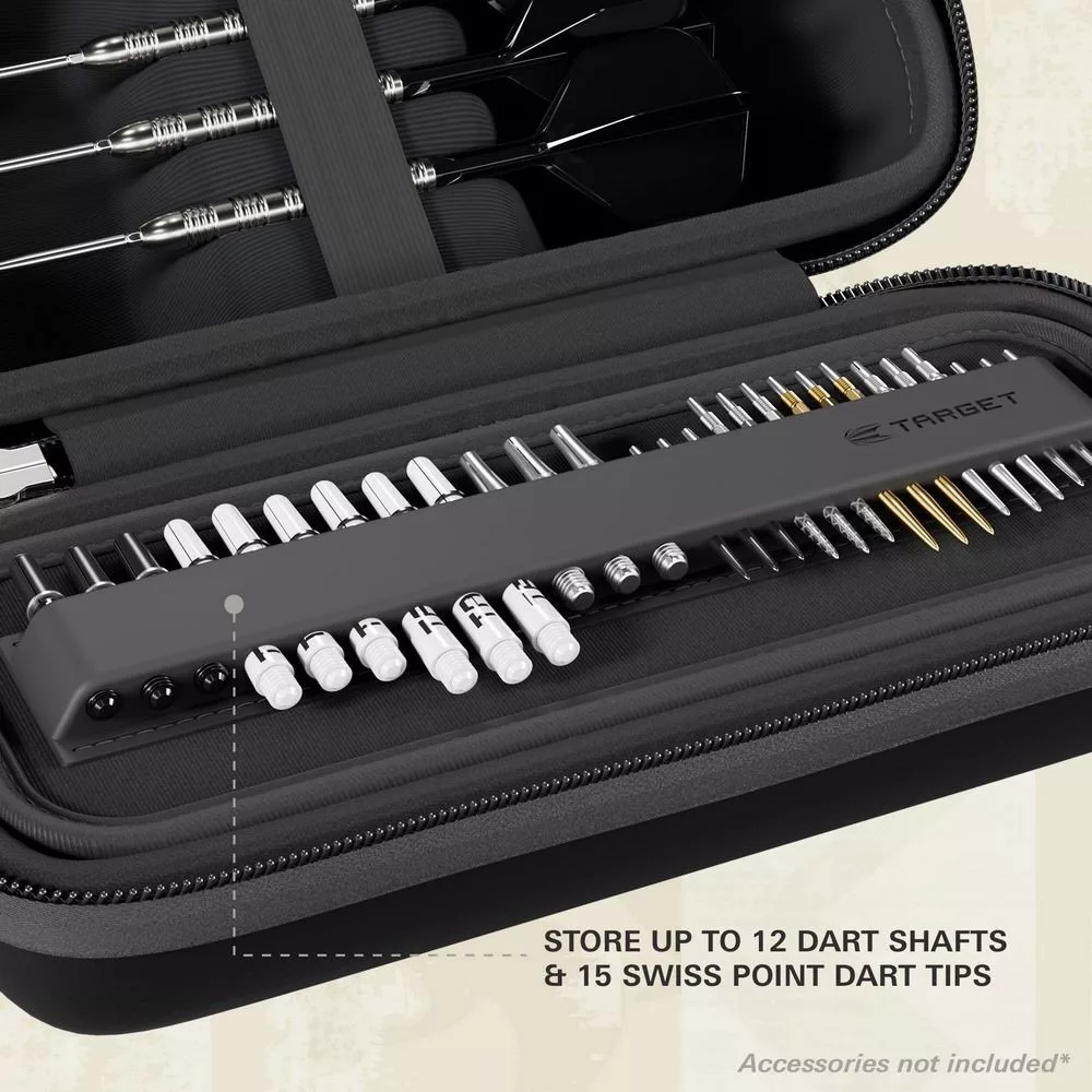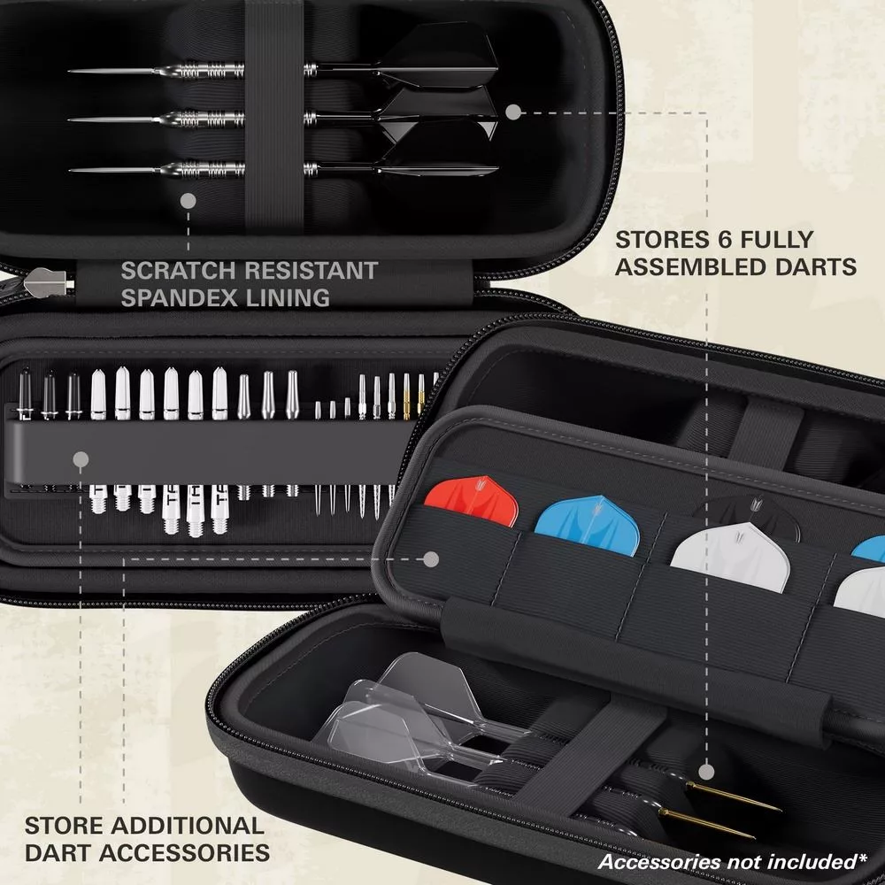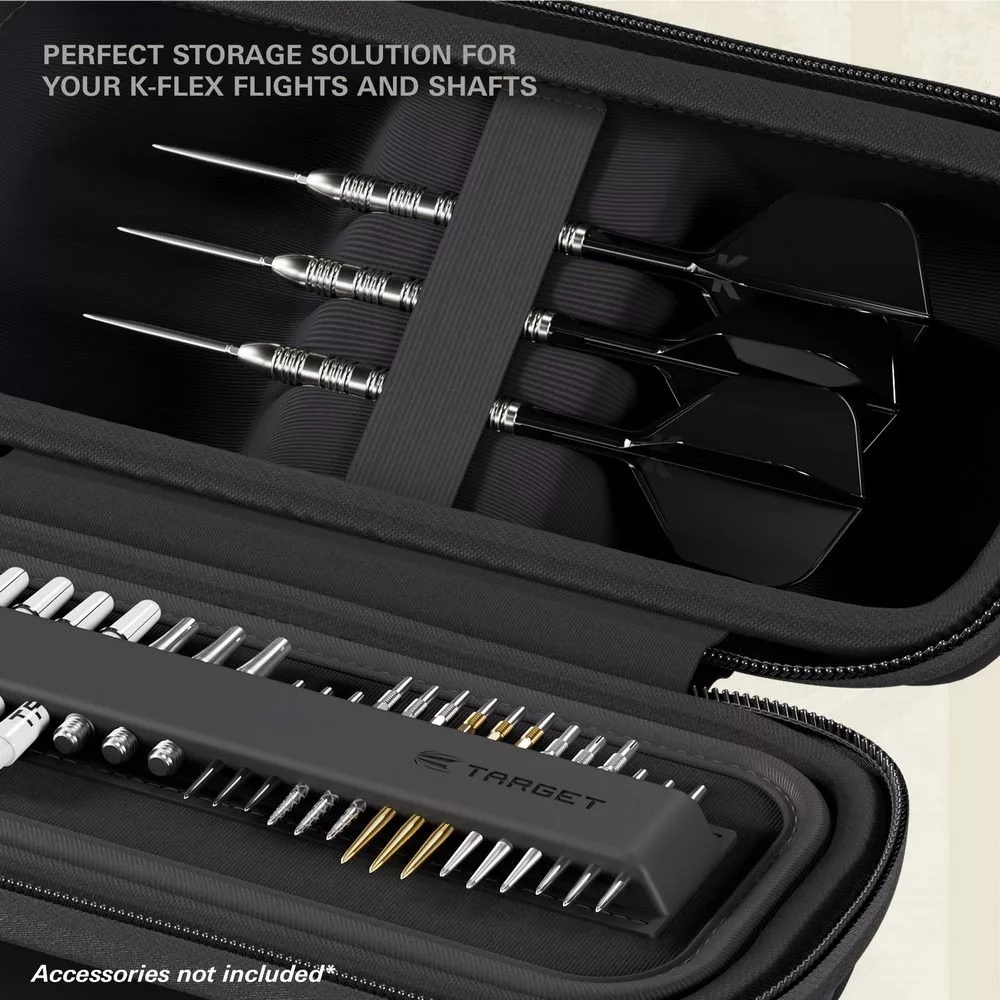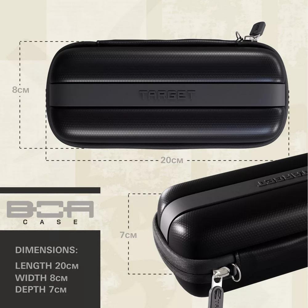 Target BOA je dokonalým řešením pro hráče, kteří chtějí svou výbavu nosit bezpečně a stylově – bez nutnosti šipky mezi hrami rozebírat.