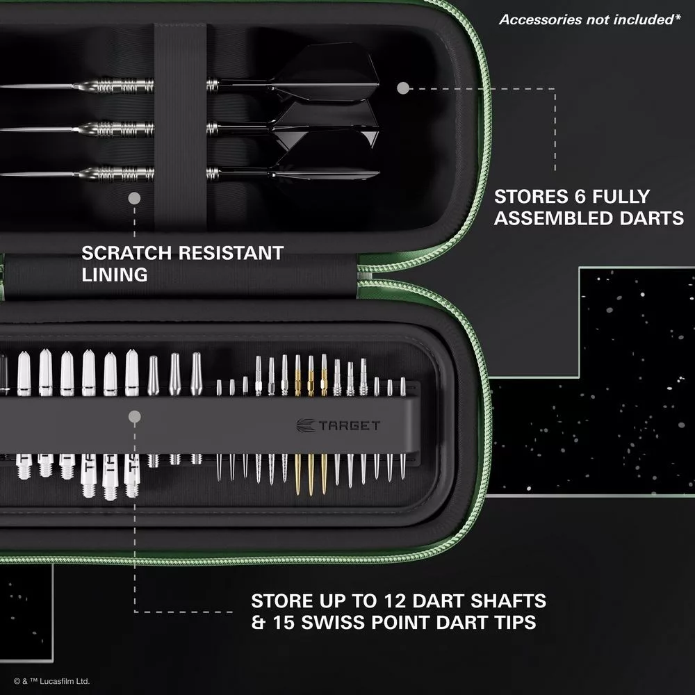 Pouzdro na šipky STAR WARS TARGET BOA GROGU je prémiové pevné pouzdro, které spojuje ikonický svět Star Wars s profesionální kvalitou značky Target. Tento model vznikl v oficiální spolupráci s The Walt Disney Company a je inspirován jednou z nejoblíbenějších postav univerza Star Wars – postavou Grogu.