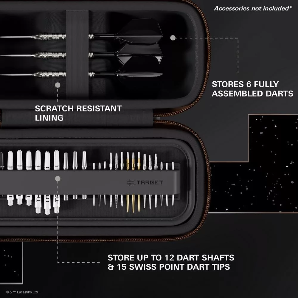 Toto pouzdro je ideální pro hráče, kteří používají dvě sady šipek a chtějí je přenášet kompletně sestavené. Zároveň potěší každého fanouška Star Wars, který hledá praktický a stylový doplněk.