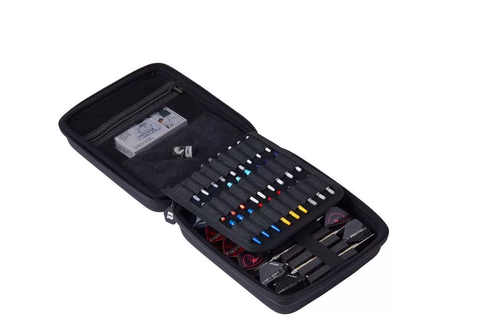 Penál Large Ultra umožňuje uložení 4 sad plně sestavených šipek, má 15 kapes na letky na šipky, 27 držáků na násadky na šipky a přihrádku na zip, pro bezpečné uložení dalších drobností!