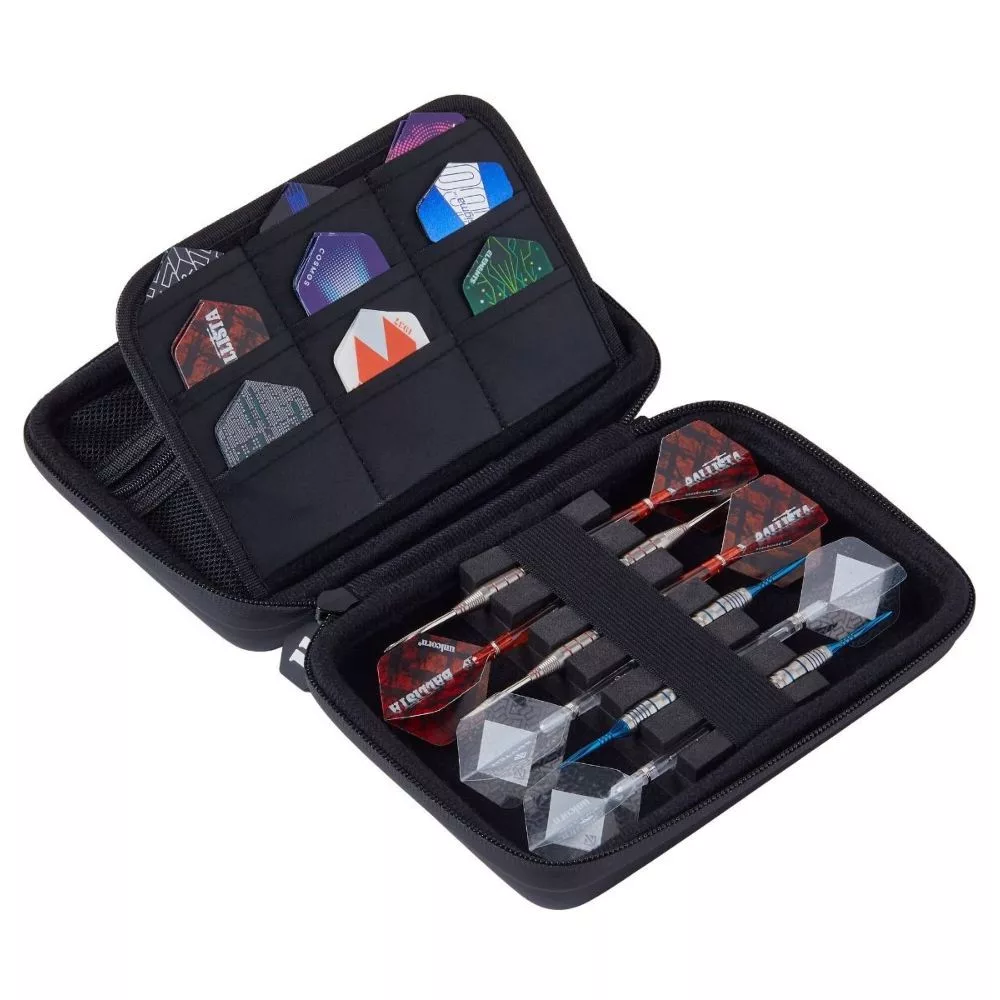 Penál Medium Ultra umožňuje uložení 2 sad plně sestavených šipek, má 9 kapes na letky na šipky, 18 držáků na násadky na šipky a přihrádku na zip, pro bezpečné uložení dalších drobností!
