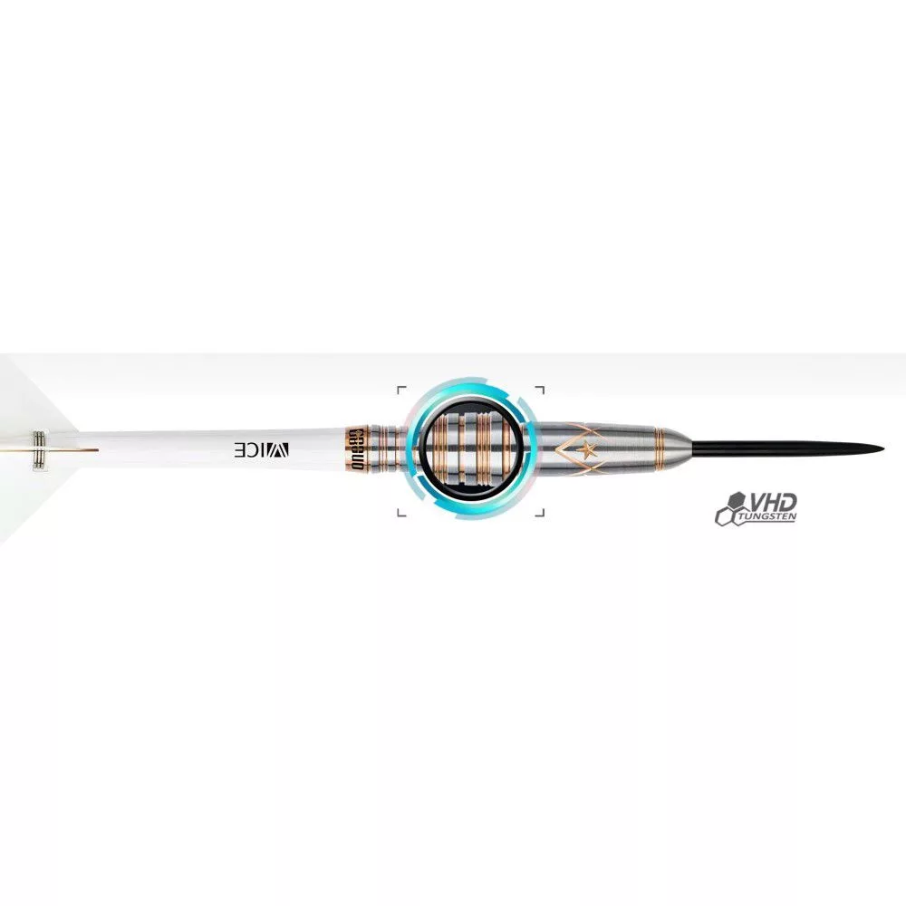 Profesionální sada steel šipek s kovovými steel hroty obsahuje Vice dlouhé násadky, standardní letky a hladké černé steel hroty.