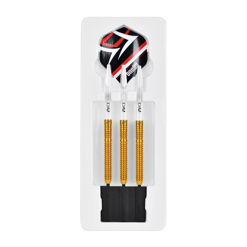 Balení obsahuje 3 kusy kompletních steel šipek One80 ADTS 6g, Brass.