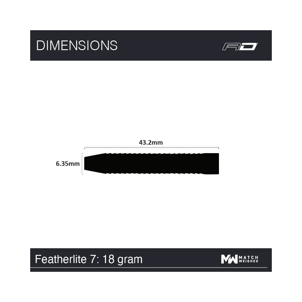 Prodejní balení obsahuje 3 kompletní steel šipky Red Dragon Featherlite 7 18g, 85% wolfram.