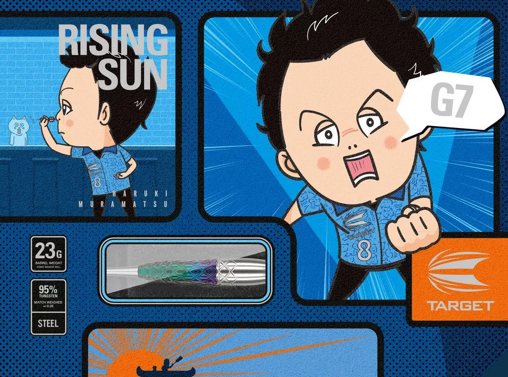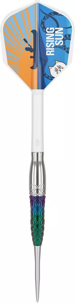Proslulý design tělíček Haruki Muramatsu dosahuje nových výšin s hybridní směsí bez drážky a diamantového úchopu, čímž vytváří synergii, která slibuje bezkonkurenční kontrolu a přesnost. "Rising Sun" Generation 7 posouvá váš zážitek se šipkami na další úroveň a nabízí dokonalou rovnováhu mezi jemností a silou.