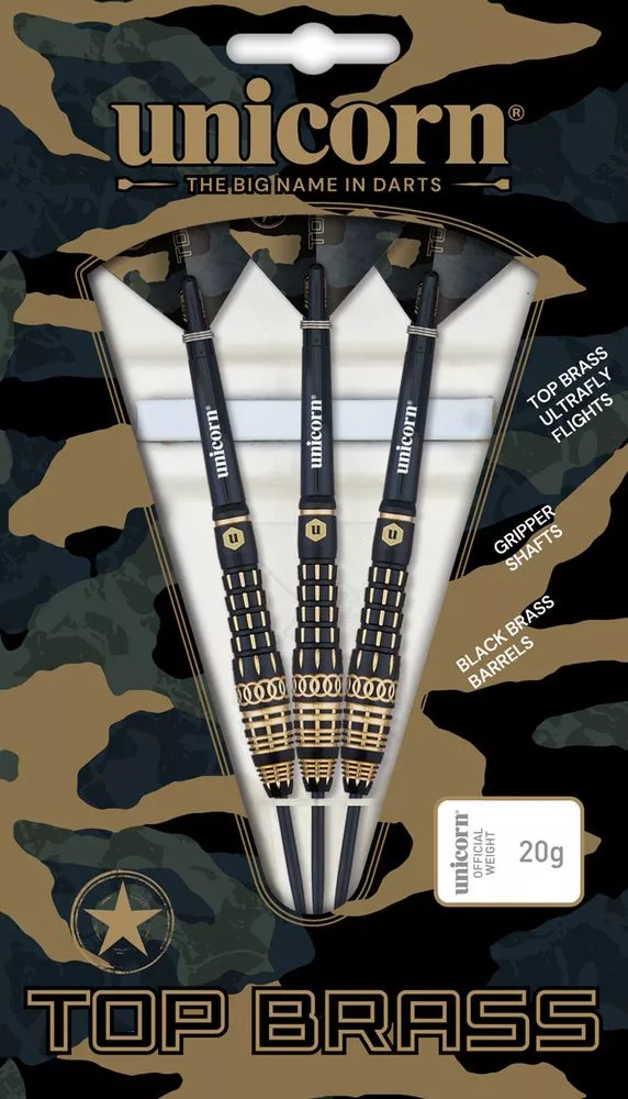Tyto šipky Top Brass jsou doplněny o násadky Gripper a Top Brass Ultrafly letky.
