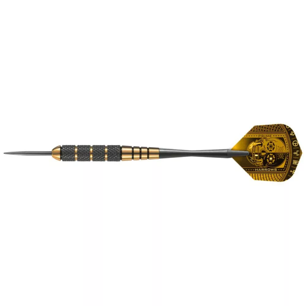 Balení obsahuje 3 kompletní šipky Harrows steel Voodoo 21g K, Brass a jednoduché plastové pouzdro na ně.