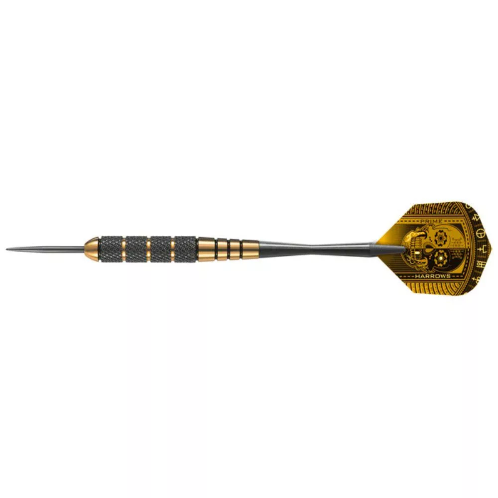 Balení obsahuje 3 kompletní šipky Harrows steel Voodoo 25g K, Brass a jednoduché plastové pouzdro na ně.