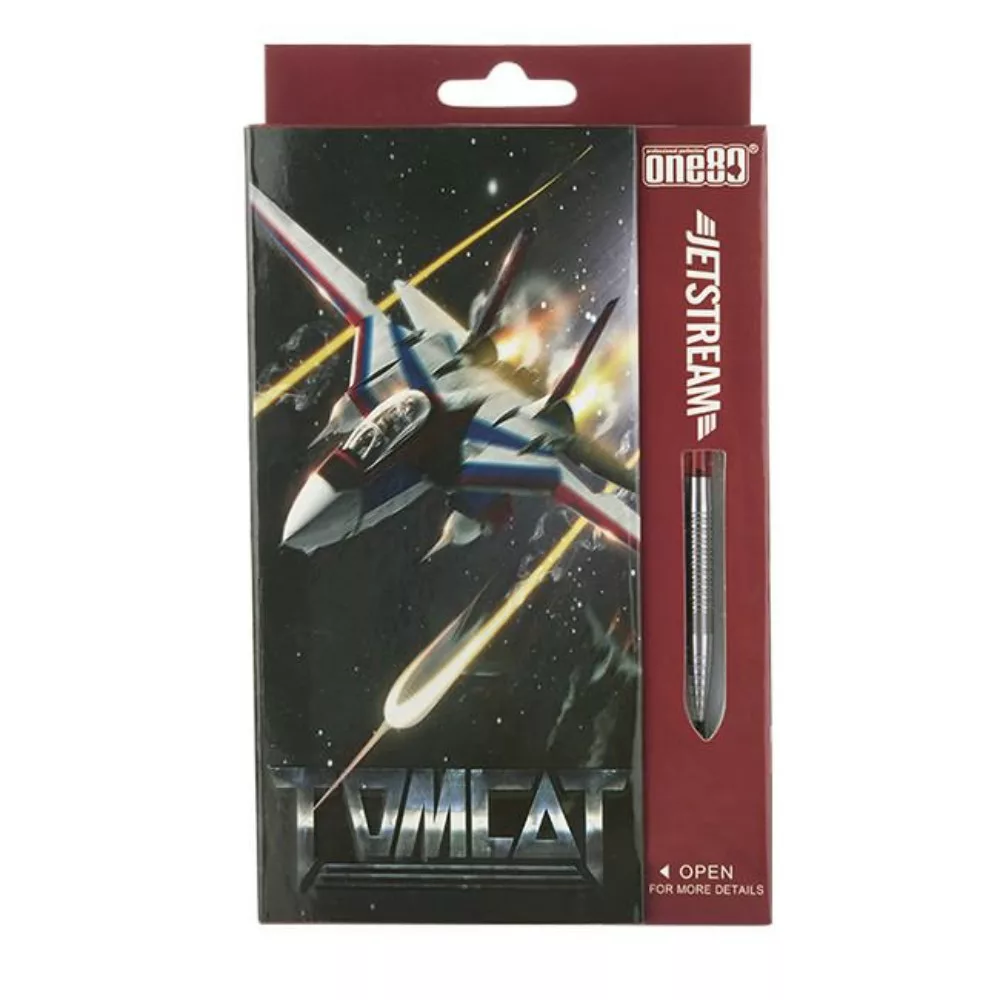 Prodejní balení obsahuje 3 kompletní steel šipky ONE80 Jetstream Tomcat 24g, 90% wolfram.