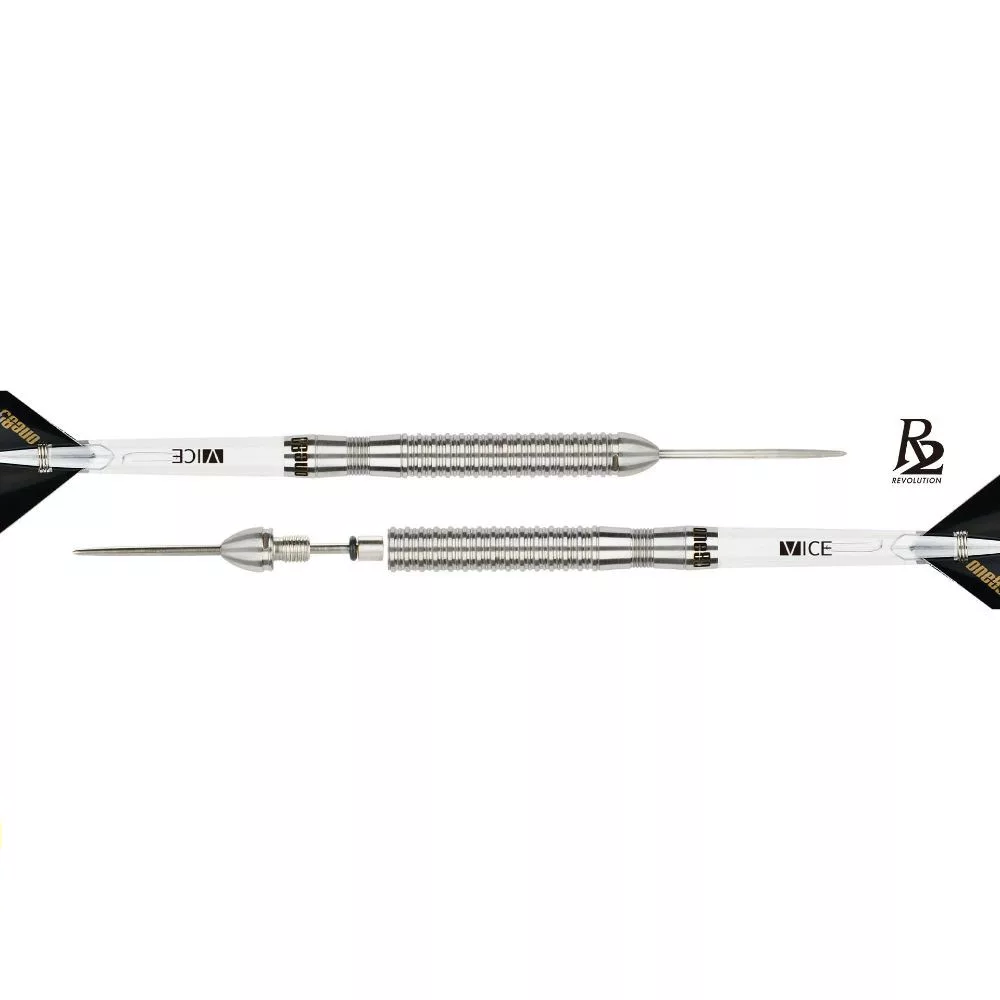 Nová Revolution série šipek. Agresivně po celé délce drážkovaná tělíčka šipek s obsahem wolframu 90%. Hroty lze rychle a snadno vyměnit odšroubováním přední části těla – technologie Replaceable Reflex Point.