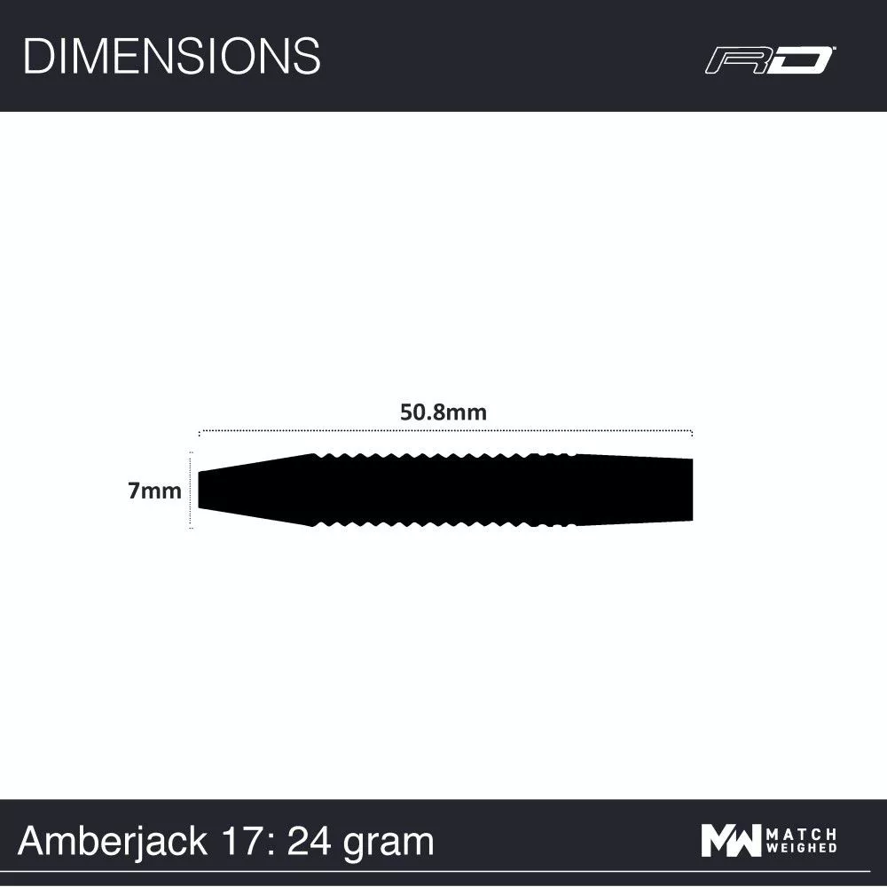 Krásně vypracované, profesionální šipky s obsahem volframu 90% ze serie Amberjack. Set obsahuje plastové násadky, extra silné Hardcore letky a černé kovové hroty. Sada neobsahuje pouzdro.