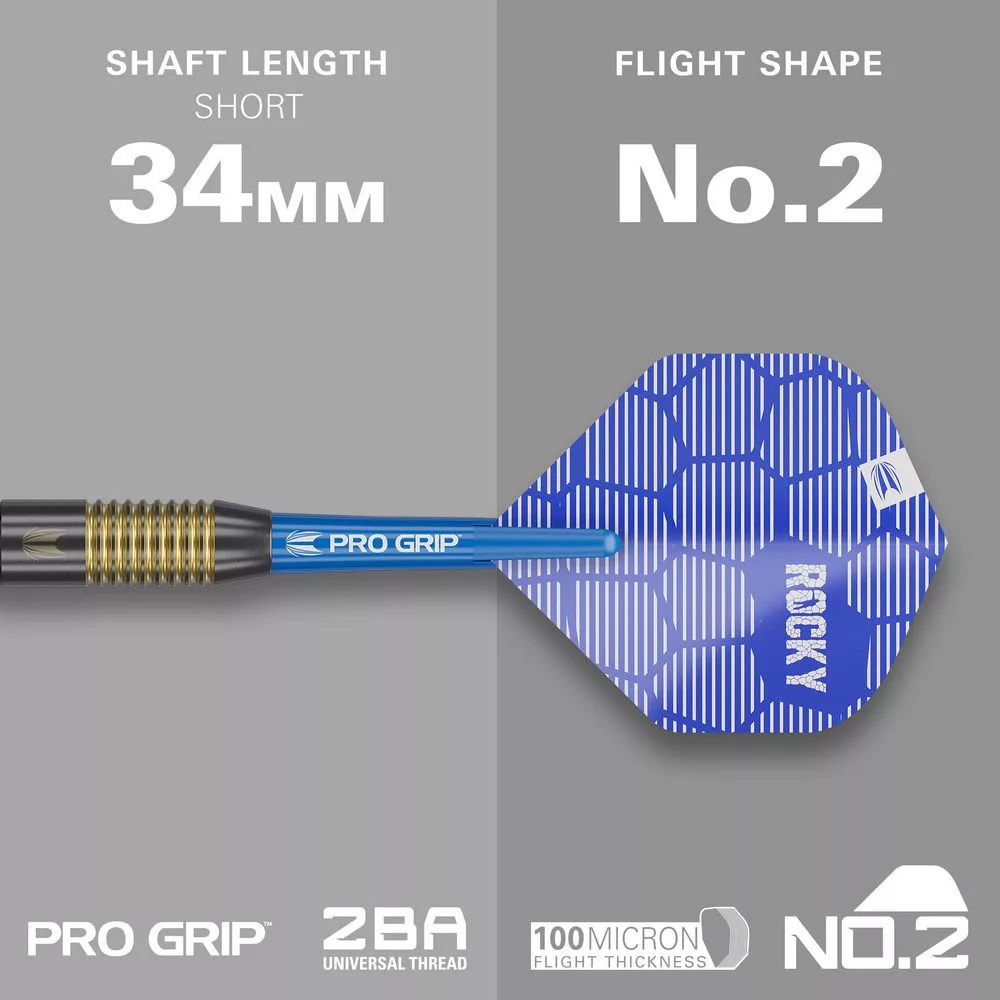 3 sady Pro Grip shaftů (krátkých, 34 mm) ve třech barevných variantách – černá, bílá a modrá – které vám umožní vytvořit si personalizovaný vzhled šipek. Navíc letky