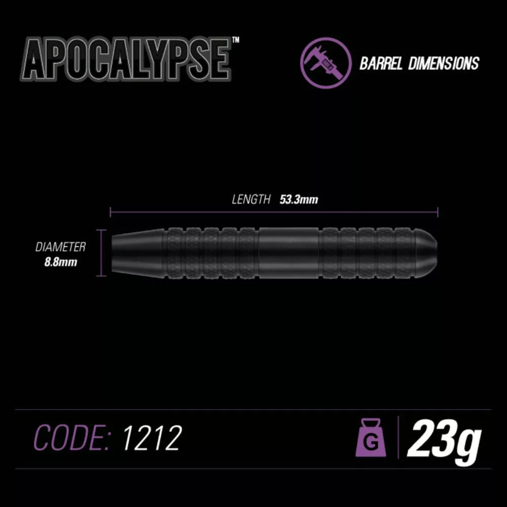 Sada šipek Apocalypse má stylovou a jedinečnou černou povrchovou úpravu ve spojení s výjimečnými výkonnostními charakteristikami. Apocalypse je kompletní řada šipek s univerzálním úchopem, která je připravena pomoci na začátku kariéry každého hráče.