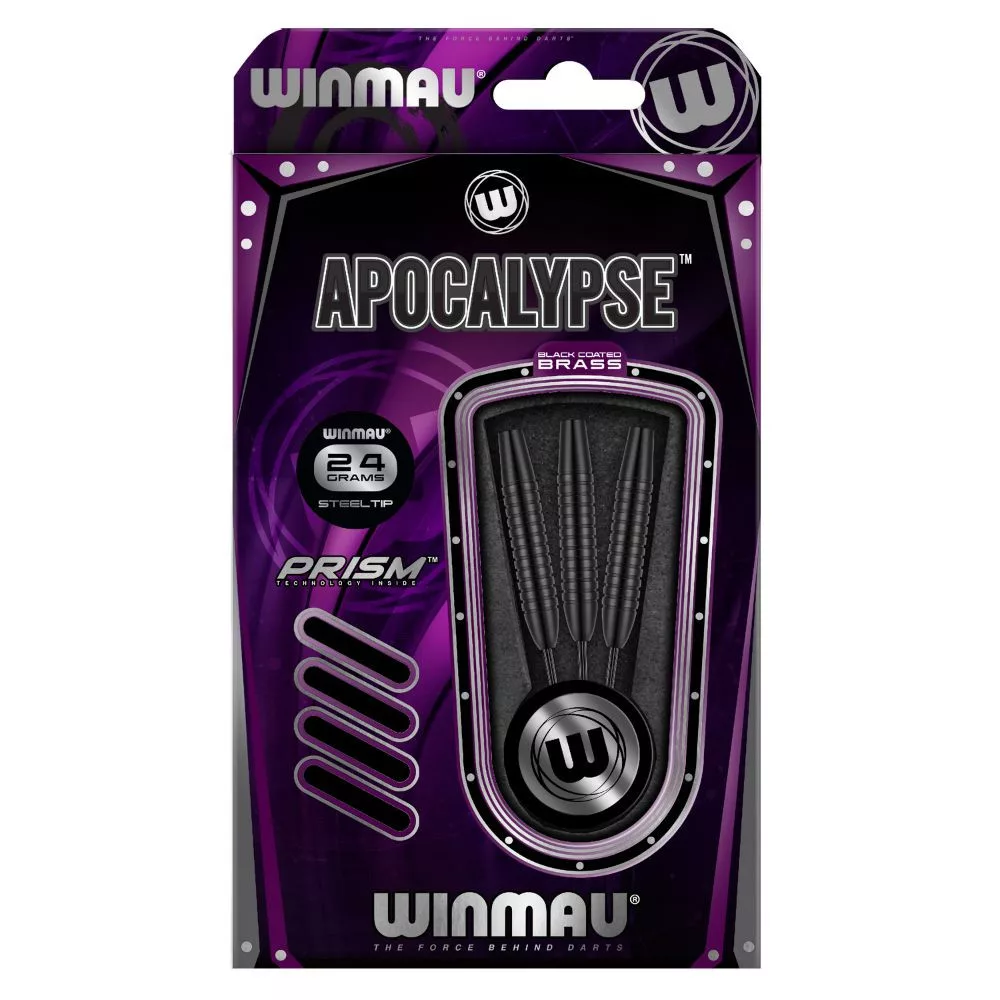 Balení obsahuje 3 kusy kompletních šipek Winmau steel Apocalypse 24g, brass a hliníkový chránič kovových hrotů.