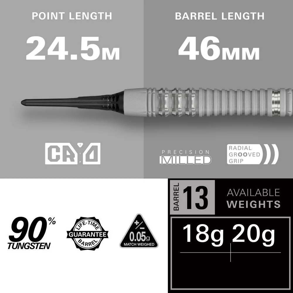 Target Cryo 13 je profesionální model šipek s měkkým hrotem (soft tip), vyrobený z 90% wolframu. Specifický