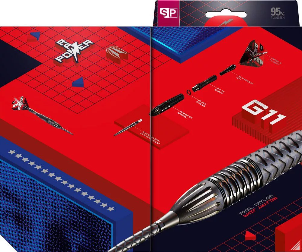 Target Phil Taylor Power 9Five Generation 11, vytvořenými ve spolupráci s legendárním šipkařem Philem Taylorem. Jedenáctá generace ikonické série přináší hráčům preciznost, stabilitu a profesionální herní komfort.