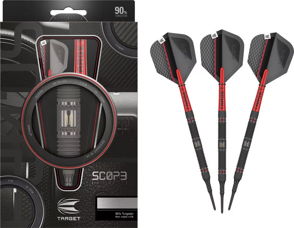 Target Scope 10 – 18g jsou dokonalou kombinací preciznosti, výkonu a designu. Vyrobeno z 90% volfrámu, tyto šipky nabízejí výjimečnou kontrolu díky přesně frézovaným radiálním a nano drážkám, které vám umožní cítit každou nuanci hodu.