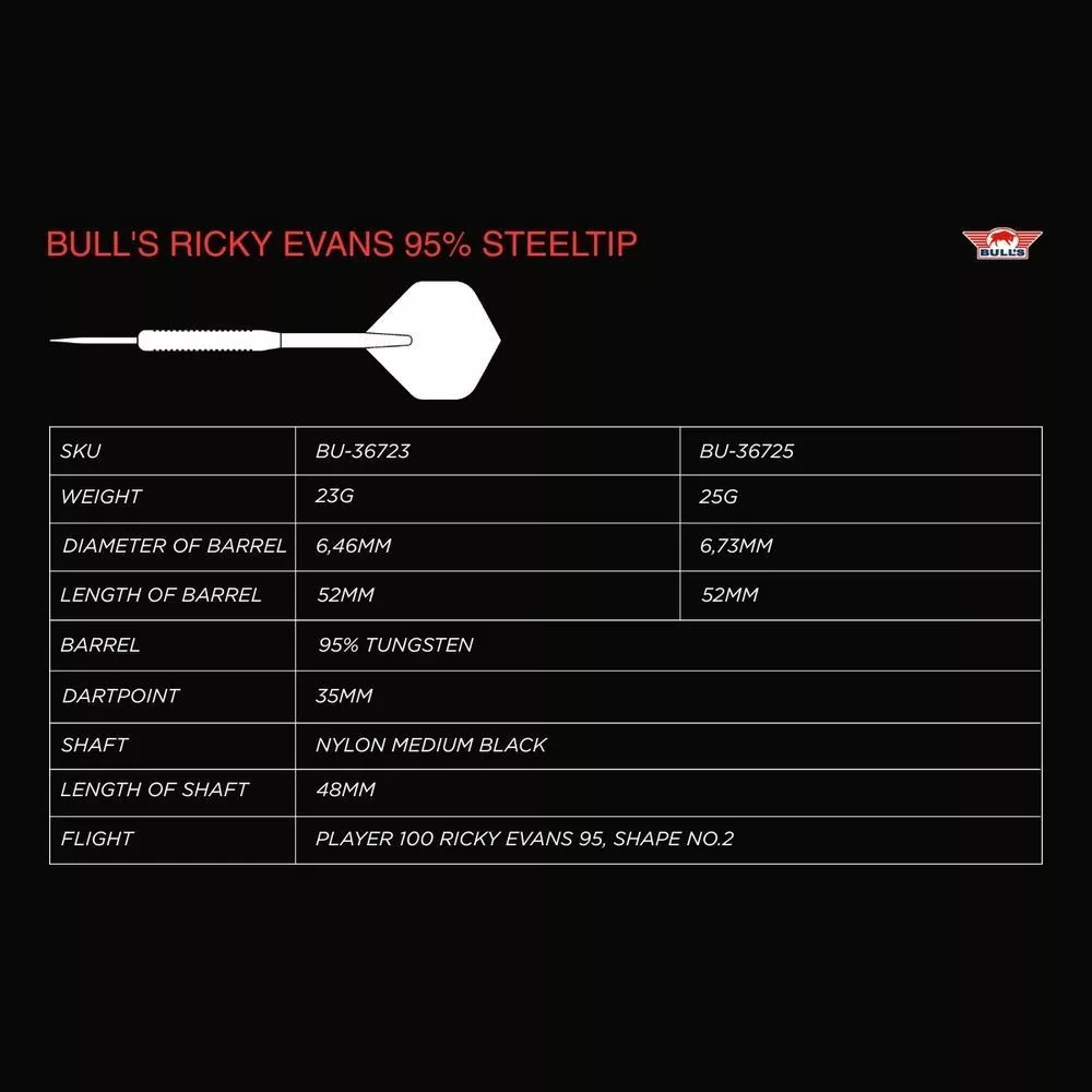 profesionálním šipkovým setem Bull's Ricky Evans 23g, vytvořeným ve spolupráci s legendárním hráčem Ricky Evansem. Tyto šipky byly navrženy pro hráče, kteří požadují