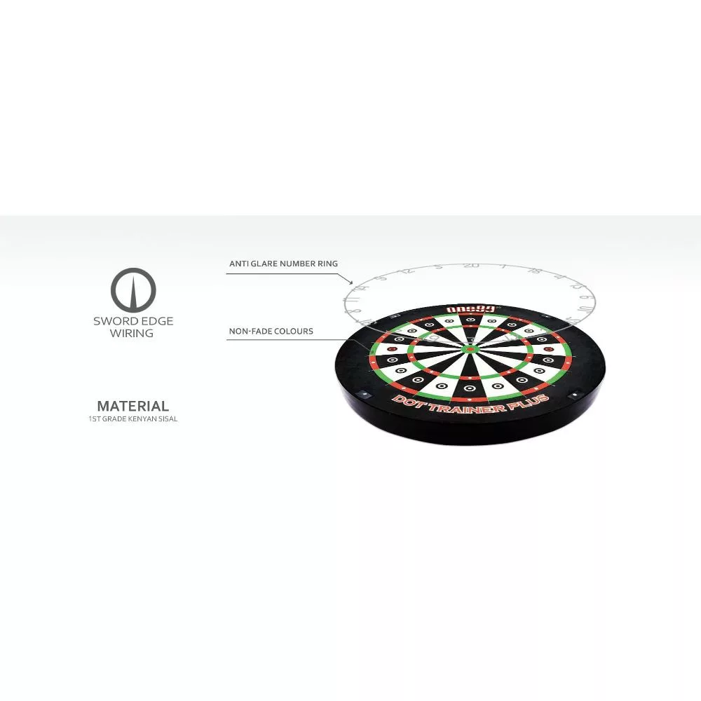 ONE80 Dot Trainer Plus je špičkovou volbou pro hráče šipek, kteří chtějí posunout svůj trénink na vyšší úroveň. Vyrobený z kvalitního brazilského sisalu nabízí dlouhou životnost a spolehlivý povrch pro přesné hody. Unikátním prvkem jsou