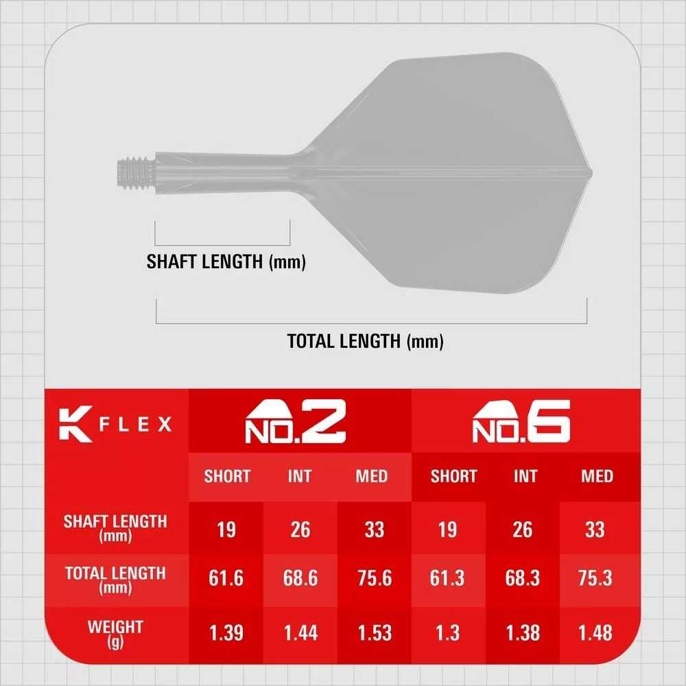 Černý základ doplněný výraznými oranžovými detaily a pixelovou grafikou vytváří unikátní vizuální efekt, který vynikne při každém hodu. K-Flex ale není jen o designu – jde o systém, který zlepšuje výkon a spolehlivost šipek.