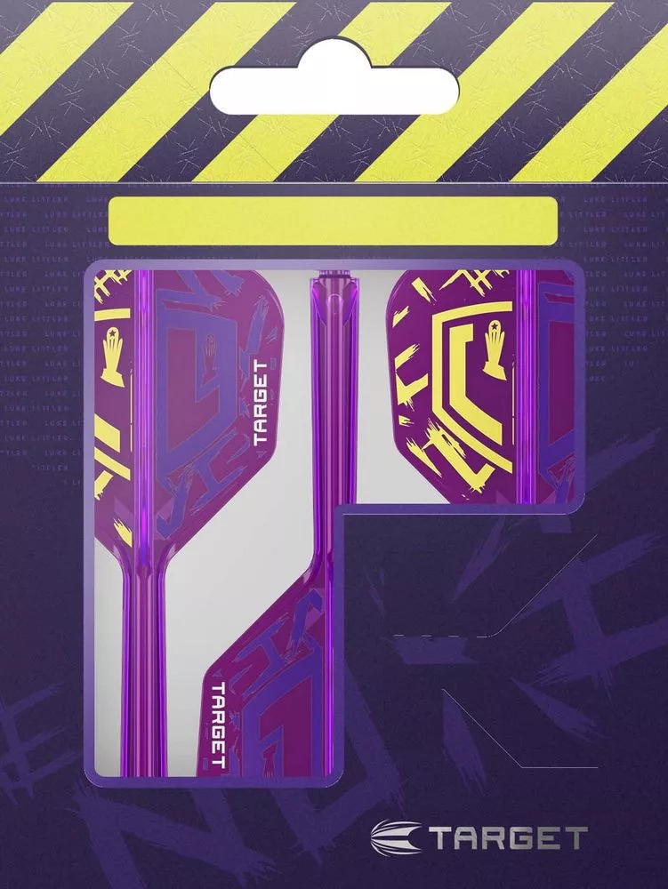 Target K-Flex Luke Littler s dlouhými násadkami (33 mm) je navržena pro precizní a stabilní hru na profesionální úrovni. Fialovo-žlutý design s logem „Nuke“ odkazuje na první titul mistra světa v kolekci World Champion 2025.