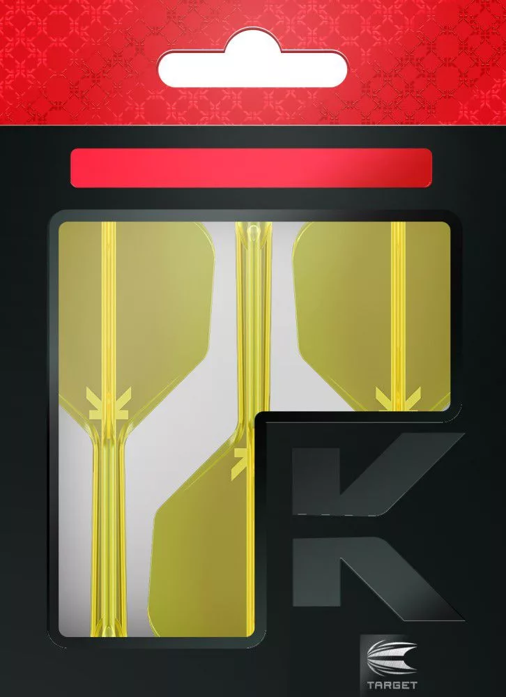 Prodejní balení obsahuje 3 letky a násadky na šipky v jednom Target K-Flex Neon žluté, No6 letky a dlouhé násadky.