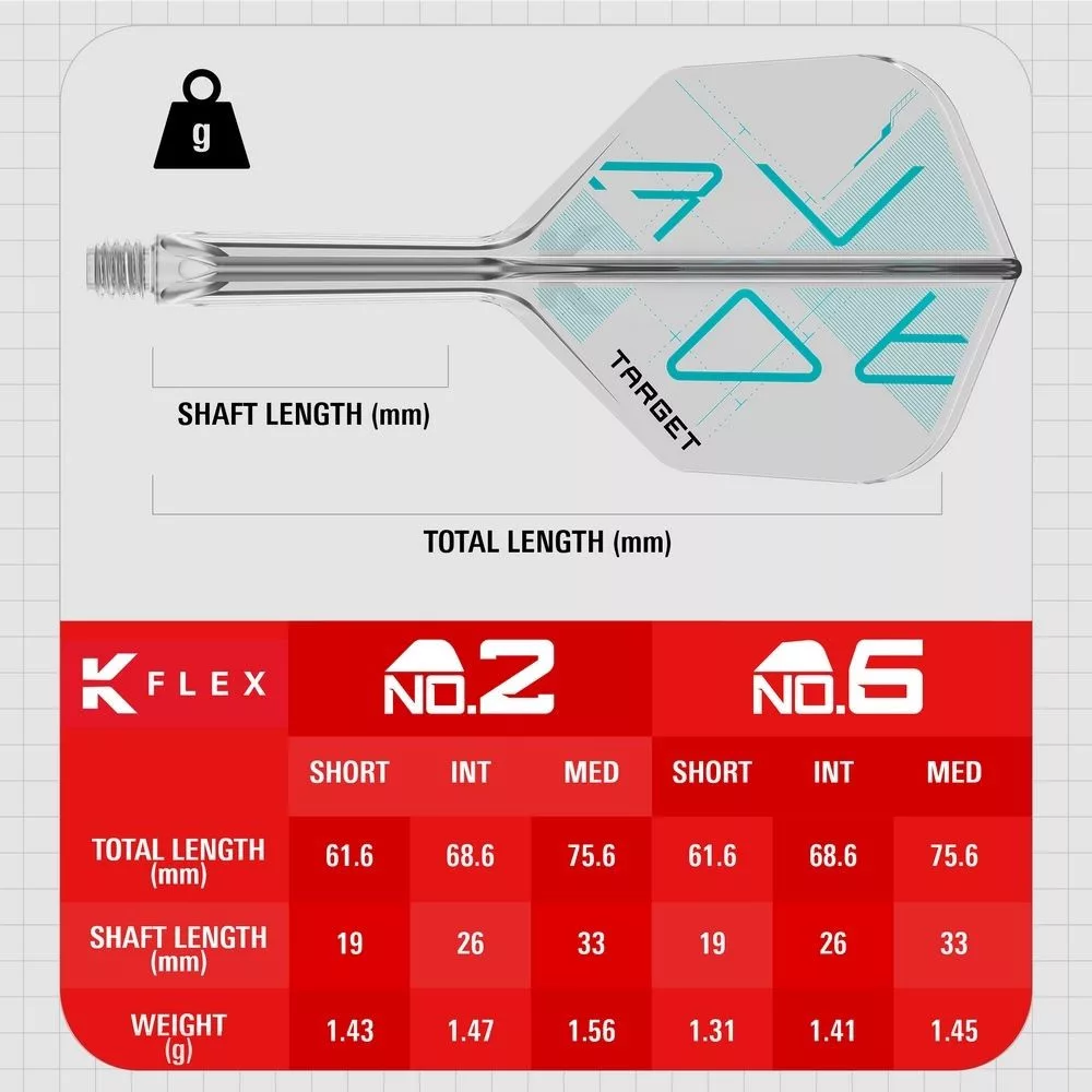 Target K-Flex Rove No6 ve střední verzi spojuje moderní vzhled, odolnost a stabilní let – perfektní volba pro hráče hledající rovnováhu mezi kontrolou a přesností.